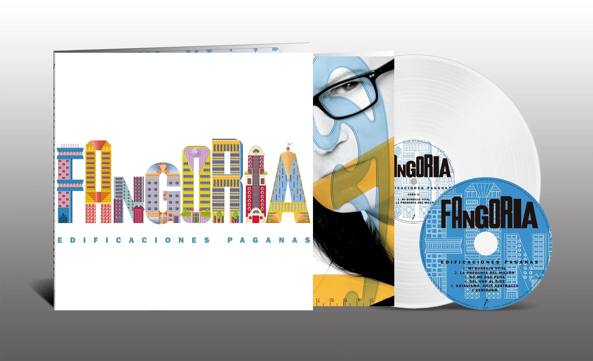 Edificaciones Paganas es el segundo EP (Extended Play, el formato entre Long Play y single) que sacamos tras Existencialismo Pop, y forma parte de la serie de tres que nos propusimos grabar a principios del 2020. De nuevo jugamos con la E y con la P para crear el título. Esta vez es un homenaje a los rascacielos, las torres de apartamentos, los bloques de pisos... Hemos vuelto a colaborar con Alejandro Sergi (de Miranda!) y por primera vez con Santi Capote (de Ellos). La canción que sacamos como single, Mi Burbuja vital, habla de construir, de edificar, pero no edificios de ladrillos sino un metaverso privado, un mundo virtual donde poder desarrollar una vida más interesante y aventurera que la que nos ofrece la realidad. Este es otro de nuestros temas recurrentes, la huida de lo real a través de la imaginación, de la creación de nuestro propio mundo...'alicatar por no desesperar'. Las otras canciones van del Cabaret Electrónico de No me das pena, que grabamos con nuestro colaborador habitual Jon Klein (de Specimen y Siouxsie and the Banshees ), al Tecno Pop de La pregunta del millón y el House Pop noventero de Del uno al diez, las dos producidas con Juan Sueiro. También incluimos la cuarta entrega de la saga Satanismo, Arte abstracto y... Ya la hicimos Rock'n'roll, Tecno Pop y Acid House en el EP anterior. Como este otro EP va de arquitectura, era ideal para cantarle a una de nuestras metrópolis favoritas del mundo : ¡¡Benidorm!! Nos pareció perfecto cerrar el EP con una canción en clave de música Disco setentera dedicada a uno de los centros de edificaciones paganas que más nos gusta. Así nació Satanismo, Arte Abstracto y Benidorm. Del diseño y fotografías de portada se encargó de nuevo Juan Gatti. Nos muestra como concienzudos arquitectos de una realidad inventada. También se implicó en la dirección del videoclip de Mi burbuja vital invocando el espíritu del Ballet Zoom y de las maravillosas galas musicales televisivas de Radio Televisión Española, que colabora cediéndonos estas imágenes de su archivo inagotable. En el metaverso de Fangoria siempre han convivido nuestras filias sin importar su procedencia, fue así en nuestro primer disco y lo sigue siendo en este.