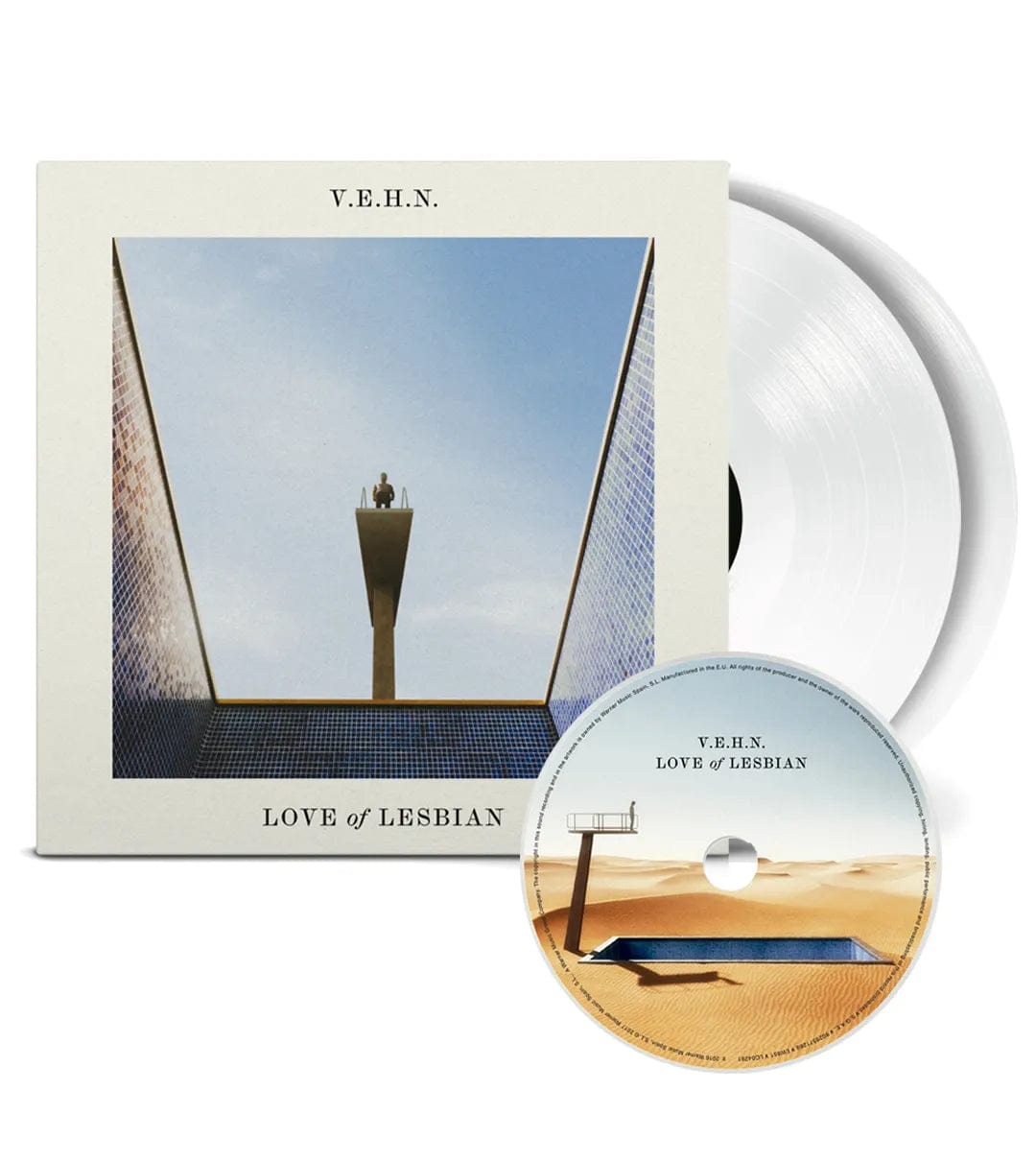 El último disco de Love of Lesbian, V.E.H.N, nominado en los Latin Grammy, ya es más que un éxito y ha sido la catapulta para que Love of Lesbian vuelvan a los escenarios en una de sus mejores giras hasta la fecha. Ahora, se edita el vinilo en color blanco 180 gr. Incluye las colaboraciones de Bunbury y de Cristina Martínez y Álbaro Arizaleta de El Columpio Asesino. El arte del disco está realizado por el premiado y reconocido diseñador Javier Jaén.