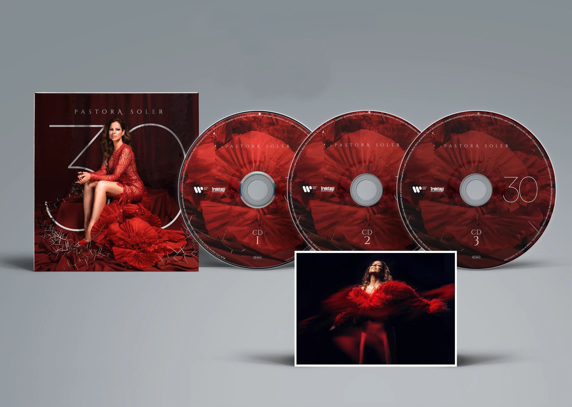 '30' el disco que conmemora los 30 años de carrera de Pastora Soler, El cual incluye un tema inédito + regrabaciones y todos sus mayores éxitos reunidos en 30 canciones. Incluye una postal firmada por Pastora Soler.
