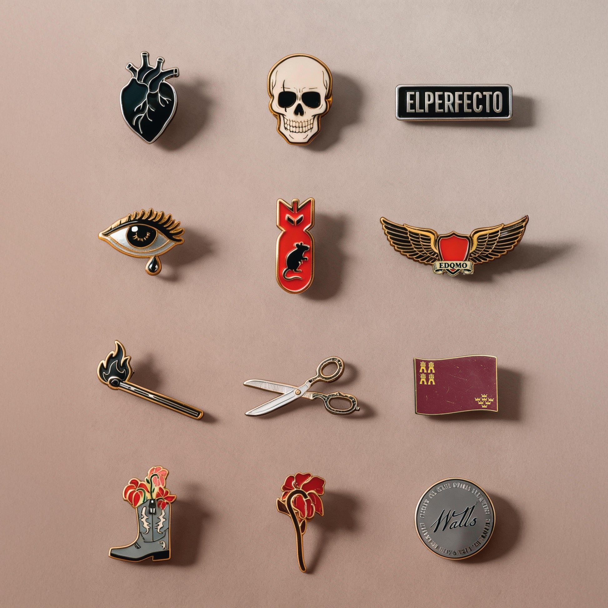 Pines de selección aleatoria. Los pines mostrados en la imagen son solo ilustrativos y no garantizan que sean los que se recibirán. El diseño se selecciona de manera totalmente aleatoria.